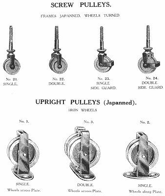 pulleys, hot house pulleys, awning pulleys, and clothes
