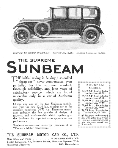 the 1925 Sunbeam catalogue. It was priced at £750. |