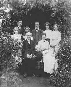 I was still the baby of the family and would wait for my father to come home from work at dinnertime and stand on the shop step until Mother said "There he is"; and I would run as fast as I could and he would scoop me up into his arms and promptly drop me into his letter bag, with his arms around me, and carry me home. One day, Flossie’s headmistress came to see Mother and Father, to ask if they would let her go to the Papel Teacher’s Training Centre in Wolverhampton to train as a teacher, since she was very clever and the headmistress thought she should be given the chance. There was no such thing as school grants, everything had to be provided for by the parents but, after they thought it over, Dad decided that he would sell the pig so that Flossie could pay for her books and go and train to be a teacher. George, by this time, was getting a job in an office at the paint works in Wolverhampton. I had now started school and used to go with my other two sisters, Lizzie and Lena, but I remember how I always wanted to come home at playtime. I took a long time getting used to being away from Mother. I did miss her, so I’m afraid there were a lot of tears. All was going well, when tragedy struck our home again, for George came home ill with severe pains. The doctor was called in and said it was colic but George got worse, and was dead within three days. The shock numbed us all. Mother lost her voice and could not hear a thing. Father was almost demented with grief – he just kept on calling his name. Aunt Agnes came and took over and tried in vain to console my parents, but to no avail. I remember the funeral so well. Auntie had us girls dressed in white dresses with black sashes. There were crowds of people everywhere. George’s coffin lay on the counter he himself had made. It was open and I asked Father to lift me up to see him. He looked so nice and I said "He’s only asleep", whereupon Daddy dropped me so abruptly and fell across the coffin in uncontrollable tears. I have never seen such a big following as my brother had. There must have been hundreds as the street was full of mourners.. He was liked by everyone. Mother did not go to the funeral. As to why, I found out later. Another baby was born two weeks later. That poor mite cried from the time he was born until it died six weeks later. His name was Benjamin. Mother would have nothing more to do with the shop and the family doctor told my father that she would have to move out of the place or else she would go into a decline. All the shop goods were packed up and we moved a short distance away; but all Mother’s customers and friends used to come and call and it would open up all her grief again. Father decided that they needed to move further away and would try and find a house in the country. Weeks and weeks passed, but without any results. He came home one day, and asked Mother if she would like to live in Wolverhampton, in town, where she would have more opportunity to go out. Father had been told of a large flat which was available to let, and Mother agreed to go and have a look. |