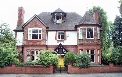 Crafts style of c.1895. Hipped, tiled roof with canted timber belvedere,